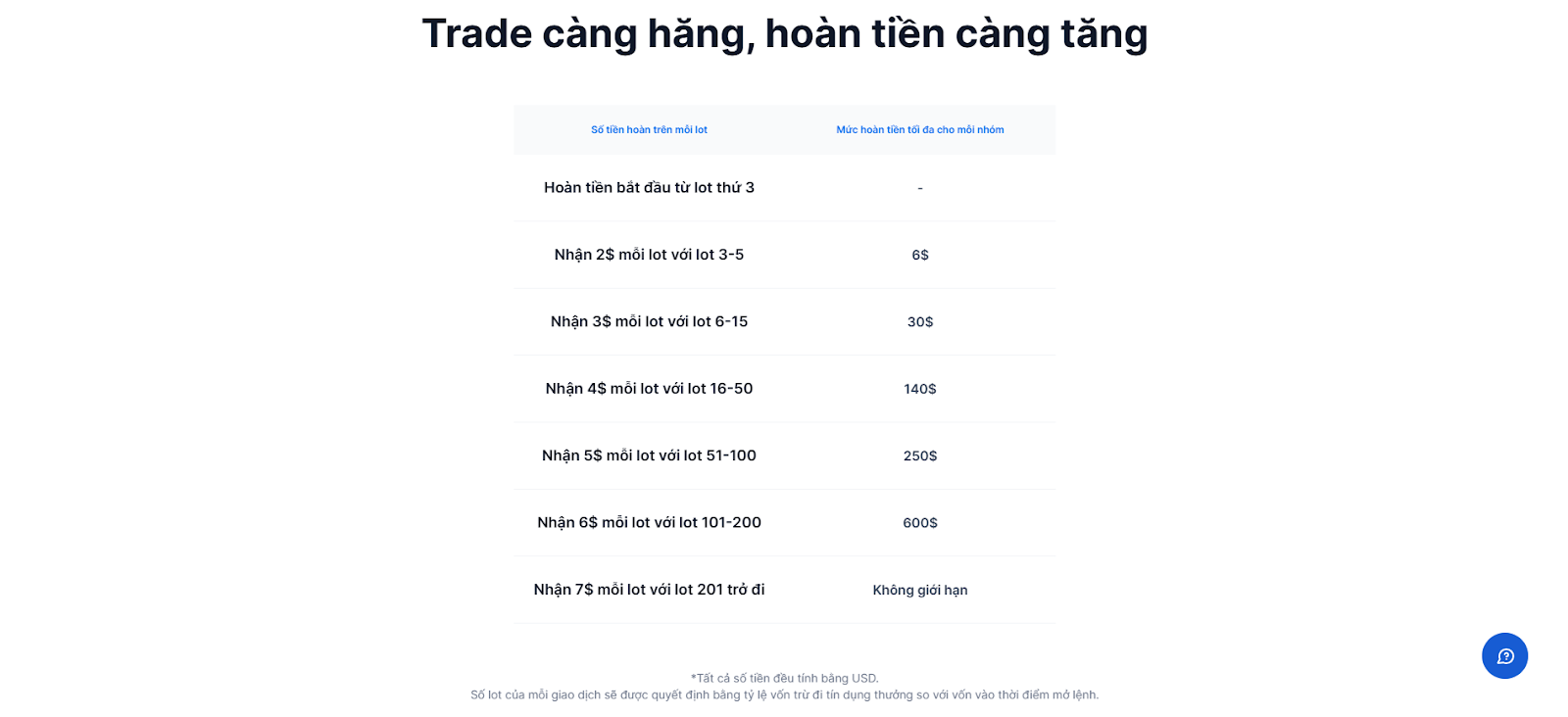 Mức hoàn tiền lên đến 7 USD cho mỗi lot giao dịch.
